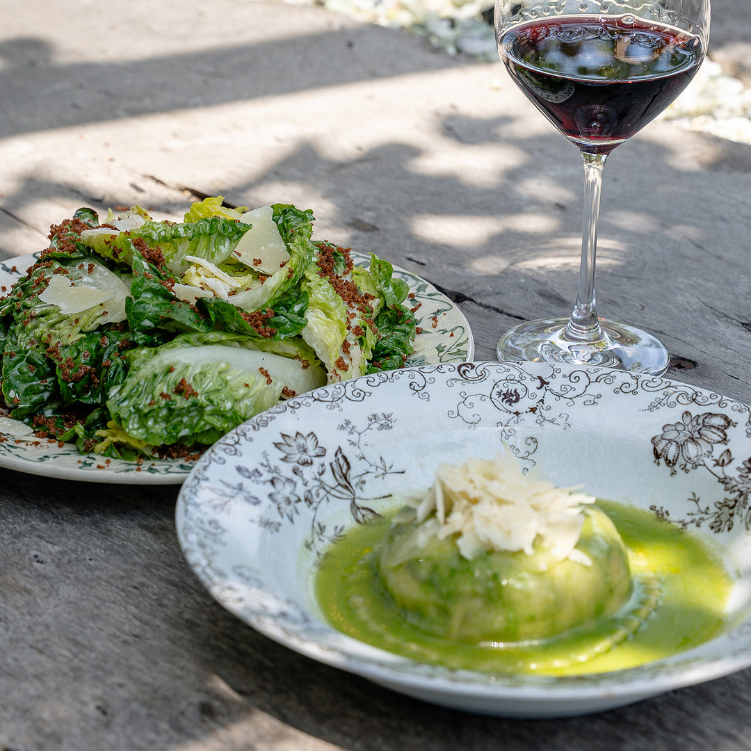 Settle in with a Little Gem Caesar, rotating handmade pasta + glass of vino for $49. Reservations recommended.